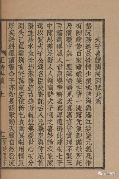6、 书口上下栏线整齐。版刻印本由于印刷涂黑,书版会出现涨缩,或版心大小不一,致使装订成册后,栏线不齐,装订规矩是齐下齐上的,活字印本拼版时,上下栏线尺寸一定,故装订成册后,从收口看来,上下栏线均整齐。