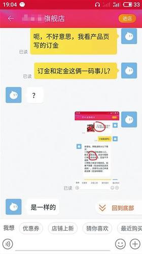商家声称“订金”与“定金”是一回事。本版图片/手机截图