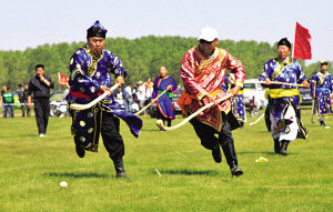 达斡尔族传统曲棍球竞技。魏肴琳摄