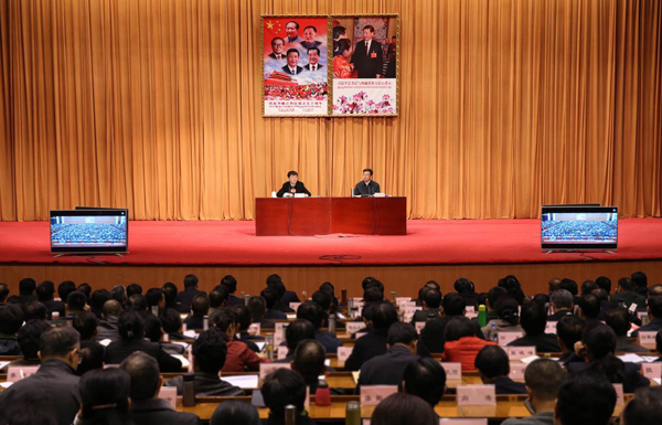 报告会以电视电话会议形式召开,各市地、县区、乡镇和自治区政府驻内地各办事处、西藏民族大学、西藏农牧学院设分会场。区人大、政府、政协省级领导同志,区高级人民法院院长、区人民检察院检察长,武警西藏总队主官,西藏公安边防总队总队长,西藏公安消防总队政委,区警卫局局长,西藏军区政治工作部、空军拉萨基地负责同志,在拉萨的离退休省级领导同志,我区党的十九大代表,区(中)直部门和单位副厅级以上干部,区人大、政协各专委会和区党委各巡视组、巡视办主要负责同志,自治区区管一级国有企业负责同志,自治区党的十九大宣讲团全体成员参加会议。区直县处级干部、离退休干部、学校师生、企业职工、农牧民群众、统战民宗、僧人、区直宣传文化系统及理论工作者代表旁听会议。(蒋翠莲 肖涛 陈跃军)