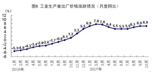 10月份,全国工业生产者出厂价格同比上涨6.9%,涨幅与上月持平,环比上涨0.7%。1-10月份,全国工业生产者出厂价格同比上涨6.5%。10月份,全国工业生产者购进价格同比上涨8.4%,环比上涨0.9%。1-10月份,全国工业生产者购进价格同比上涨8.4%。