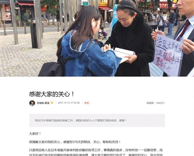 11月13日,江歌的母亲通过微博表示,正在日本做开庭前的准备工作。 微博截图