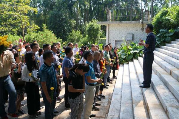 2017年10月28日,秋风送爽,阳光灿烂,因当天也属我国传统节日“重阳节”,各基层委支部党员首站到达番禺滴水岩森林公园忠烈祠拜祭抗战先烈,接受革命传统教育。各党员在沙湾北村抗日烈士纪念碑前默哀,并向抗日英雄献花致敬,缅怀抗日英雄们为我们今天和平社会、幸福生活捐献血肉之驱所作出的伟大牺牲。