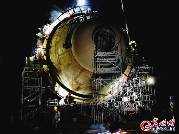 某公司盐化钛复合板MVR结晶器现场施工组焊。很多施工现场就像图中显示一样,作业面光滑并悬空在高处,需要搭设脚手架配合施工。