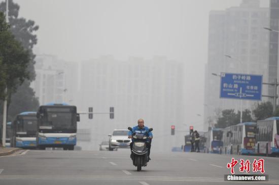 资料图:雾霾突袭湖南长沙。 杨华峰 摄