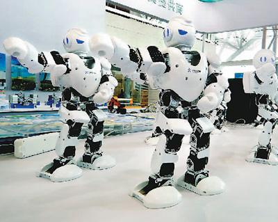 图为9月20日,中国(南京)未来教育与智慧装备展览会上,智能机器人集体亮相。