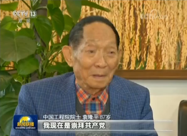 中国工程院院士 袁隆平:我们原来是要拥护共产党,我现在是崇拜共产党。把我们中国从一个贫穷、落后,处处挨打的中国变成一个富强的中国,这真是了不起。(我们)要加倍努力工作。