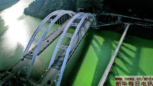 ▲即将通车的G85福(州)兰(州)高速公路的褒河水库大桥(11月23日摄)。经汉中盆地穿越秦岭,通往我国西北地区的福兰高速,基本沿古褒斜道而上,天堑变通途。新华社记者陶明摄
