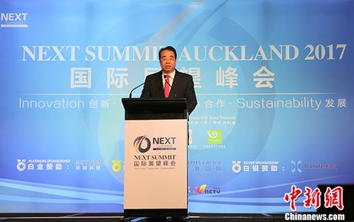 11月27日,中国国务院侨务办公室党组书记、副主任许又声在奥克兰出席国际展望峰会。图为许又声在开幕式上致辞。中新社记者陶社兰摄