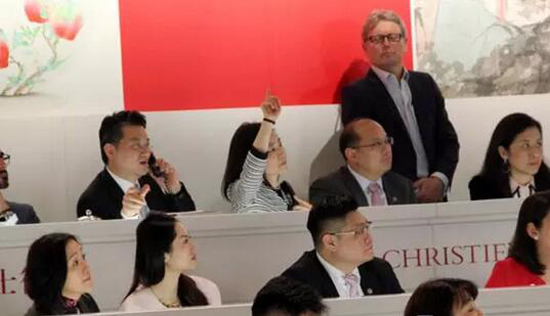 嘉靖五彩鱼藻纹盖罐原为“暂得楼”胡慧春旧藏,市场地位历来十分显赫,曾先后于1992年和2000年两度上拍,分别取得286万美金(当时折合2230万港元)和4404.48万港元的佳绩,而2000年由乐从堂主人曹兴诚拍下时,还刷新了当时中国瓷器的世界拍卖纪录。时隔17年后再度问世,佳士得为其造势可谓花费心机,作为重要标的,无论是财力还是物力都在所不辞,此前鱼藻纹盖罐和达·芬奇《救世主》并置的图片曾一度刷爆朋友,因此这件作品堪称本季佳士得秋拍最大看点,而当晚现场也不出意外地引来了水泄不通地围观和屏息凝神地期待。