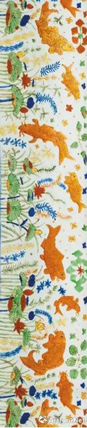 对于成化斗彩鸡缸杯以及宣德青花的大名很多人或许耳熟能详,而嘉靖五彩鱼藻纹盖罐又是凭何能够与它们等量齐观?从中国瓷器烧的技术革新方面来说,在嘉靖年之前,御窑制作的彩瓷均以小巧易携的物件为主,然而到了嘉靖年间,御器厂由于制瓷技术的突破而开始能够烧制大型瓷器,此鱼藻罐可谓是中国最早出现的大型多彩御制瓷器。而在彩瓷的独特性方面,嘉靖五彩虽然没有“永宣”、成化御窑瓷画笔触的那种灵动自然,也不及“清三代”那般纤巧精细,但是其独特艺术格调却难以取代,故宫博物院古器物部主任吕成龙以“拙”来形容嘉靖一朝的五彩瓷器。