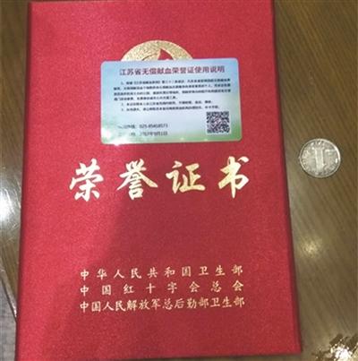据介绍,江苏已发放“无偿献血荣誉证”36420张,其中南京有5000多位献血牛人获得这张卡。