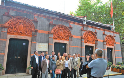 梧桐掩映中,从中共一大会址纪念馆出发,步行约50米,就到了上?;破智辰ǚ裰行?。