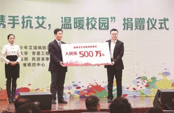 捐赠仪式上,民进会员、哈尔滨美罗湾医院院长马海龙向黑龙江大学师生赠送了价值500万元的健康及艾滋病筛查服务,并同时向中国青少年艾滋病防治教育工程办公室捐赠10万元,用于购置暖冬衣物?!扒喟∥荨笔谂埔鞘接搿鞍慕逃T靶小备行蛔窗浞⒁鞘酵本傩校喙亓斓枷蚝诹笱У劝思业ノ皇谂普匠闪ⅰ扒喟∥荨?。