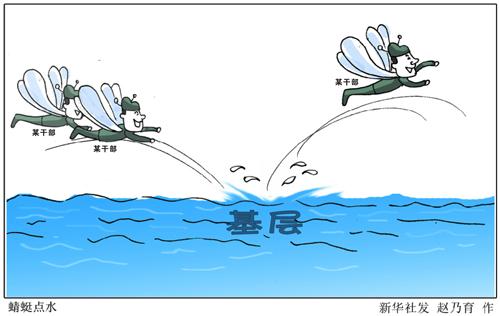 基层干部群众将此类调研形象描述为“掉到井里的葫芦,在水上浮着”,并将其总结为“三多三少”:到基层调研做指示的多,虚心求教的少;开展一般性调研多,带着问题开展专题调研少、蹲点调研更少;到工作突出的地方调研多,到情况复杂、问题多、矛盾突出的地方调研少。