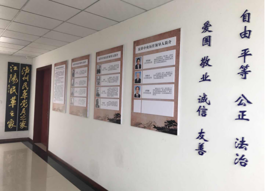 这面墙上,民革的历史传承与社会主义核心价值观熠熠生辉、相得益彰。