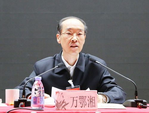 民革中央主席万鄂湘在民革中央企业家联谊会代表会议上讲话。