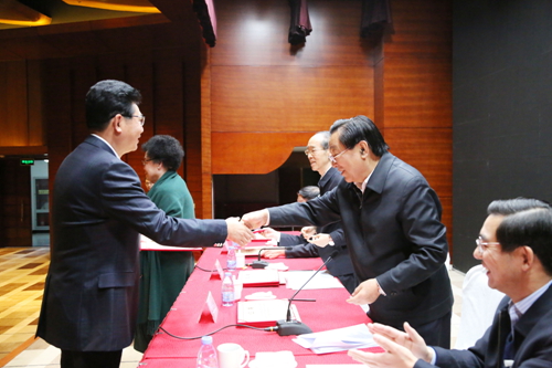 图为民革中央领导颁发任命书。