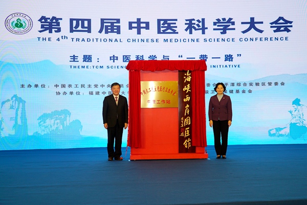 陈竺为“海峡两岸国医馆”和“中国农工民主党医疗卫生专家平潭工作站”授牌闭幕式上,陈竺主席和刘群英副主任分别为“海峡两岸国医馆”和“中国农工民主党医疗卫生专家平潭工作站”授牌。于文明在闭幕致辞中指出,陈竺主席的报告,强调了利用精准医学理念,促进中医药的传承、创新与发展,以及关于砷剂在治疗急性早幼粒细胞白血病方面取得的良好疗效,说明了中西医结合将传统医学和现代医学融合发展是生命科学领域,保障人类健康的正确之路。本届中医科学大会展现了世界卫生组织前总干事陈冯富珍女士、诺贝尔奖获得者Bruce Beutler(布鲁斯?博伊特勒)、美国耶鲁大学郑永齐教授,张伯礼、陈可冀、陈凯先、韩家淮、吴以岭等院士,张大宁、刘嘉湘、杨春波、周岱翰等国医大师,首届全国名中医王新陆教授,以及来自海内外生命科学领域、中医药学领域的著名专家学者的交流研讨成果;回顾分享了青蒿素研究成果防治疟疾获奖、中西医结合创新成果砷剂治疗急性早幼粒细胞白血病在国际上获奖的成功经验和启发;展现了中医药所蕴含的伟大智慧,为健康中国建设及人类健康事业所作出的巨大贡献。会议强调,中共十九大报告中提出的“坚持中西医并重,传承发展中医药事业”,充分体现了以习近平同志为核心的中共中央对中医药事业发展的高度关怀和对中医药传承发展的高度期待。农工党要结合党派优势,通过中医科学大会的交流和探讨,增强时代使命感,继续加强参政议政、社会服务等各项工作。