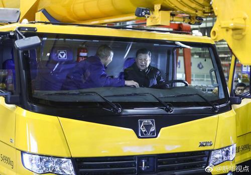 正在徐工集团考察的习近平,坐进刚下线的XCA220型全地面起重机驾驶室,向技术人员详细询问起重机的性能、产量、价格等。