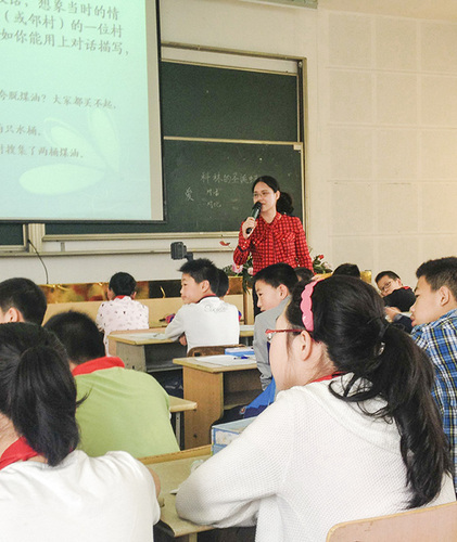教室里一片寂静。王悦微的朗诵余韵悠长,坐在后排的一个小男生听得怔怔出神。