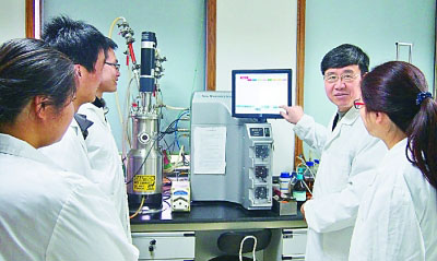 王一成在浙江省农业科学院畜牧兽医研究所向学生讲解干扰素发酵实验。 浙江省农科院供图