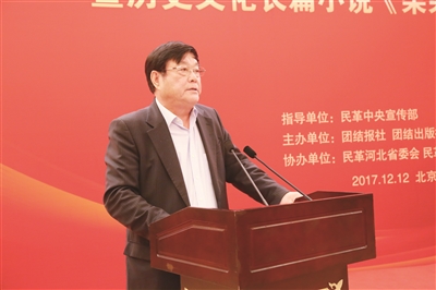 今天,历史文化长篇小说《柴荣大帝》举行图书捐赠仪式,很有意义。这部小说的作者——民革党员朱乐天,我之前就认识。以前知道他既是一位事业有成、经营有方的企业家,也是一位致力育人、热心公益的教育工作者;这次又多了一个热爱传统文化,投身文学创作的文艺工作者身份,着实令人欣喜,也让人敬佩。这部小说讲述了被后世誉为“五代第一明君”的后周世宗柴荣的传奇一生,体现了传统文化心怀天下、励精图治的精神。在实现中华民族伟大复兴的道路上,这些精神品质,具有很强的现实意义。