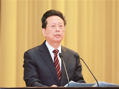 2015年12月16日,中国民主建国会成立70周年纪念大会在京举行。图为全国人大常委会副委员长、民建中央主席陈昌智在纪念大会上讲话。