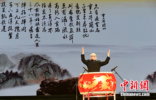 图为著名朗诵艺术家殷之光朗诵毛泽东诗词:《水调歌头·重上井冈山》。中新社记者张勤摄