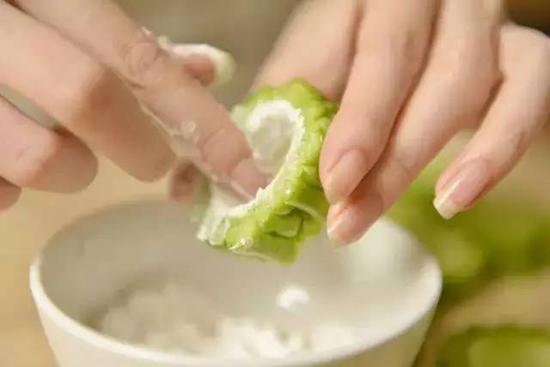 苦瓜一向是苦味食物的首选,不仅含有极多的苦味素、苦瓜甙等苦味物质,还富含维生素C、维生素B等营养素。大多数人并不太习惯“吃苦”,所以在吃苦瓜时会想尽各种办法去掉苦味。焯水或盐水浸泡可能是人们用得最多的方法,其结果当然是:苦味去了,苦味成分所特有的功效也去了,也同时也损失了减肥的功效。