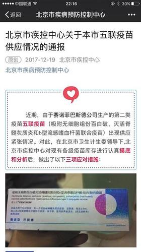 昨日,北京市疾控中心公众号发文称五联疫苗出现供应紧张。