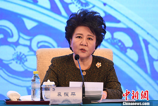 12月19日,第四届世界华文教育大会在北京开幕,来自世界55个国家和地区的近600位华文教育界代表参会。图为国务院侨务办公室主任裘援平在开幕式上作主题报告。中新社记者崔楠摄