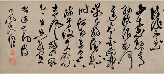 在起首的这短短数行,我们就看到了徐渭在狂草中的控制,绝非一味癫狂。
