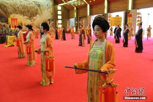 资料图:唐代“冬至祭天大礼”再现西安。中新社记者 张远 摄