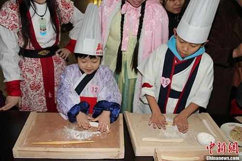 资料图:冬至来临之际,小朋友聚集西安博物院体验包饺子的过程,感受传统节日的氛围。阿琳娜 摄