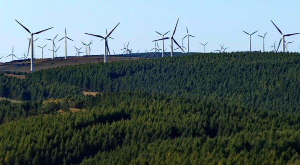 △塞罕坝林海中的风力发电设备