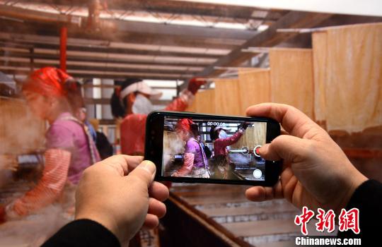 摄影爱好者用手机拍下参展图片。张金川摄