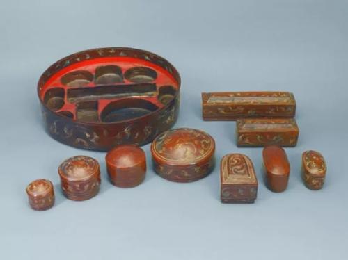 彩绘双层九子漆妆奁。来源:湖南省博物馆