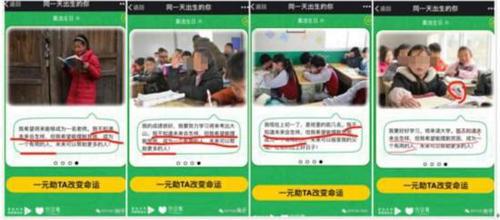 网友还爆料,很多小朋友的理想都一样。记者随意搜索了几个生日,看到几个小朋友的愿望都写着“我不知道未来会怎样,但我希望摆脱贫困,成为一个有用的人。”网友表示,“他们都还这么小,他们的愿望应该是更纯真的,而不是千篇一律的,这不符合逻辑。”