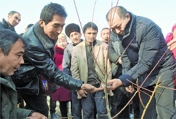 “专家还说了,为消灭和清除病虫害滋生与繁殖的场地,要在果树进入休眠期后,彻底清理果园,将园内的枯枝烂叶清扫干净,集中烧掉或深埋。”村民塔依尔·艾合买提说。