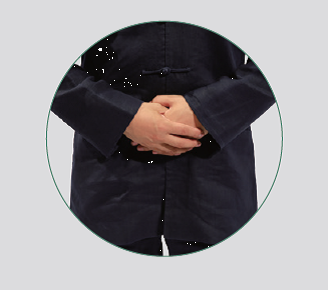 1、 两手虎口交叉,放在腹部,体会一下随着我们的呼吸,腹部有没有跟着动。然后,深长呼吸,随着吸气,腹部向回收,也就是瘪肚子。