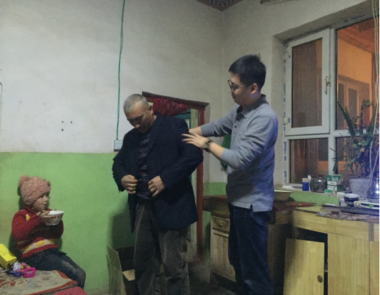 来到新疆海联会副秘书长邓拥军的亲戚阿不都热合曼家中,亲戚早早就准备好了可口的饭菜。邓拥军为亲戚穿上了带来的新衣,为家中长辈送去200元慰问金,并带去了其在新疆医科大学上大学的孙女的祝福。