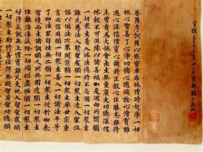 管小柳透露,《华严经》是《金粟山大藏经》的一部分,距今900多年历史。《金粟山大藏经》以字体和纸张久负盛名,目前存世约二十件。因此,作为《金粟山大藏经》零卷残纸的《华严经》,亦属珍贵。(完)
