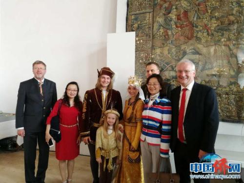 图为作者参加Landshut中世纪婚礼节,当地市长期待与中国建立密切合作。(作者供图)