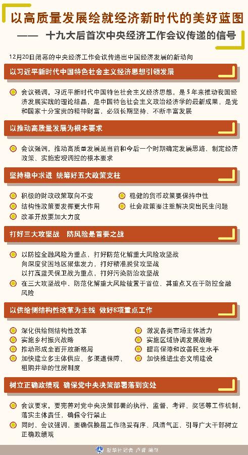 中央经济工作会议于12月18日至20日在北京举行,这次会议首次提出习近平新时代中国特色社会主义经济思想。