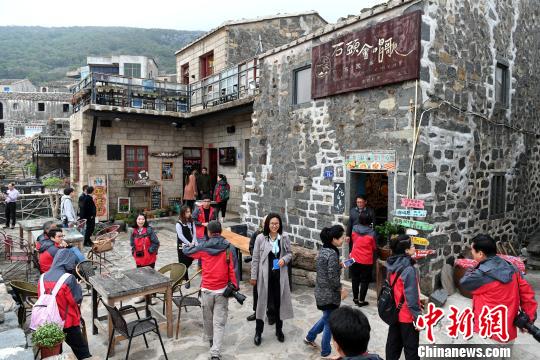 台湾青年参与经营管理的福建平潭石头厝民宿吸引许多游客前来观光。王东明摄