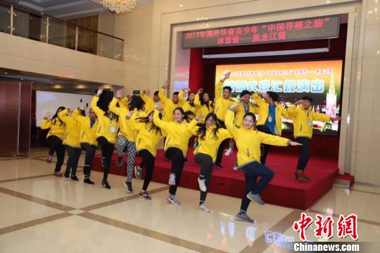 图为活动现场,海外华裔青少年集体表演在冬令营中学到的舞蹈。主办方供图
