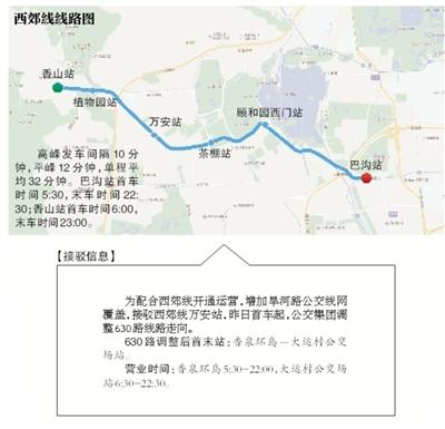 作为地上线路,西郊线开通试运营后,将与已运营的地铁10号线在巴沟站实现换乘,但乘客需先从10号线巴沟站A口出,沿指示标示步行1至2分钟即可到达车站入口。