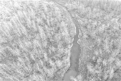 图为2017年11月27日,位于湖南沅江市的南洞庭湖自然保护区核心区内一大片等待清理的欧美黑杨林。记者 李尕 摄
