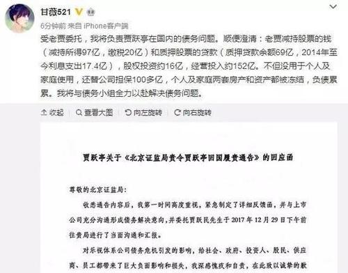 贾跃亭今日也发布回应函,称为更好地解决上市公司债务问题,已委托甘薇、贾跃民全权代理其行使上市公司股东权利和履行股东责任。